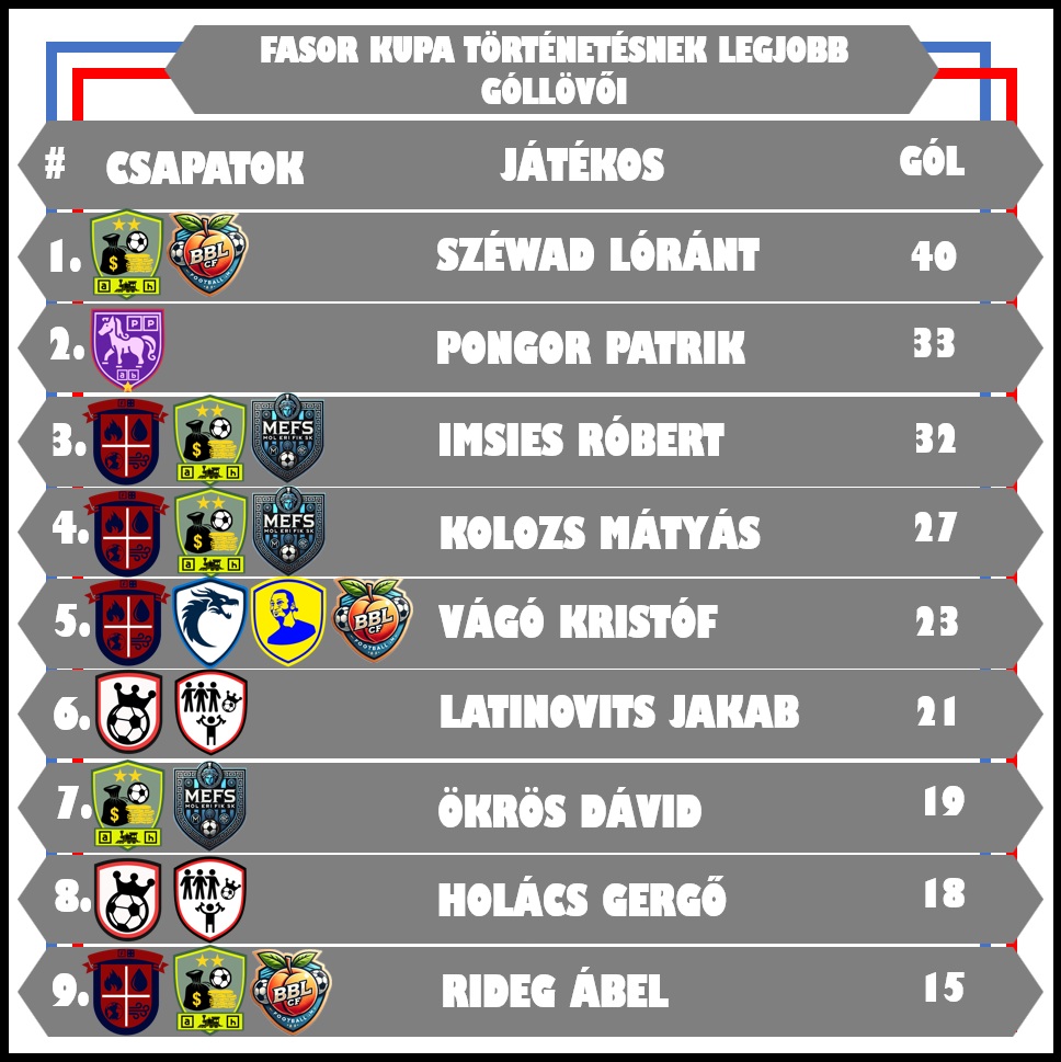 FASOR KUPA STATISZTIKÁK