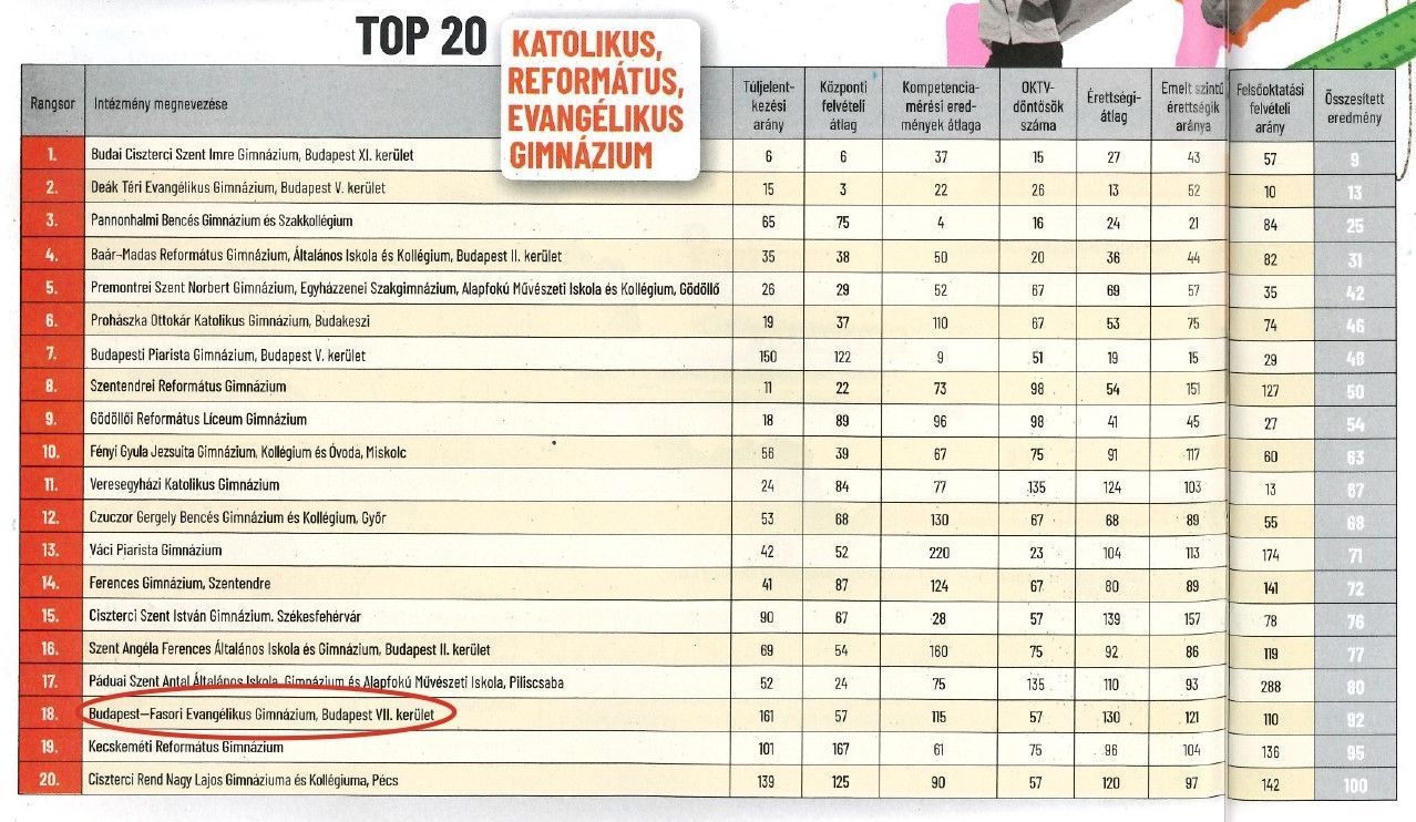 Nagy örömünkre iskolánk - a tanárok és a diákok eredményes munkájának köszönhetően - felkerült az MCC top 100-as listájára, és az egyházi iskolák közül a top 20-ban szerepel.