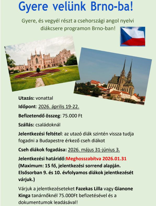 Gyere velünk BRNO-ba! 20262025. szeptember. 25., csütörtök - 08:18:31| Módosítva: 2026. január. 13., kedd - 09:55:51 JELENTKEZÉSI LAP