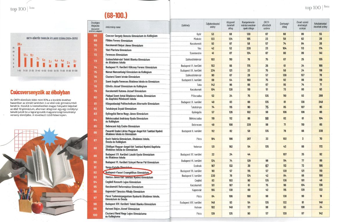 Nagy örömünkre iskolánk - a tanárok és a diákok eredményes munkájának köszönhetően - felkerült az MCC top 100-as listájára, és az egyházi iskolák közül a top 20-ban szerepel.