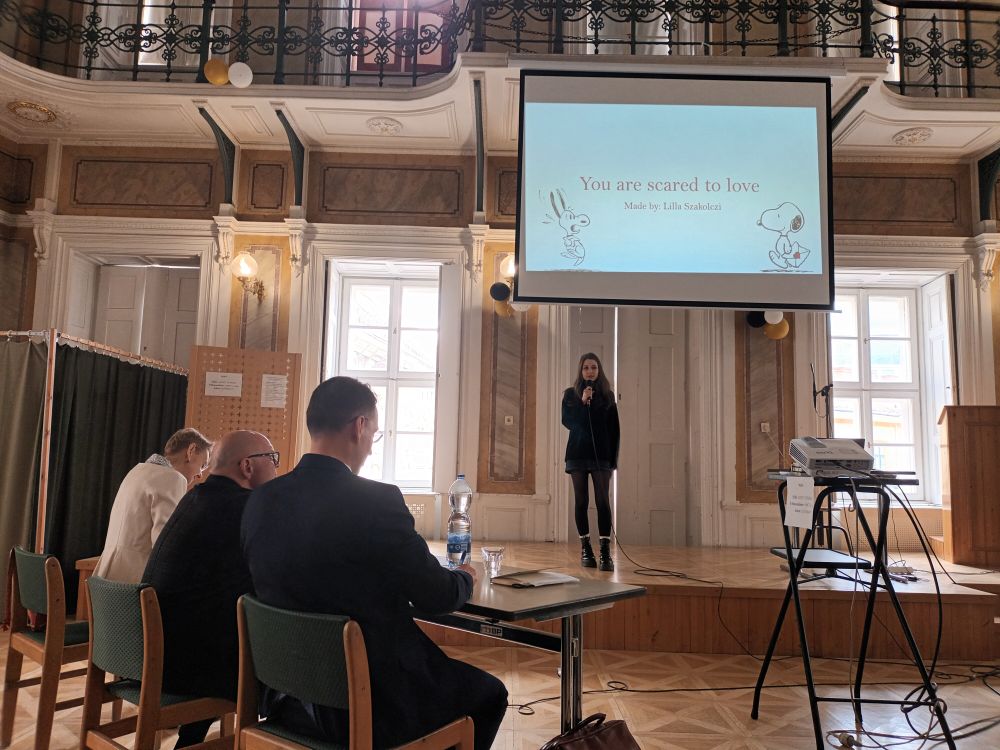 résztvevő diákok, és ügyesen követték a TED-talk szerkezetét. A tanulók nagyon személyes témákat boncolgattak, Lilla témája „ You are scared to love” ( Miért félünk szeretni?), Bori témája „ Be bold enough to try something new!” ( Merj belekezdeni valami újba!) .
